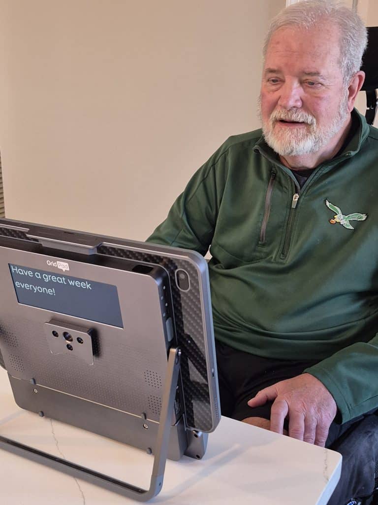 As my speech declined, frustration grew. Wanting to speak and not being able to feels like being trapped behind glass—present, aware, but unheard. Through Johns Hopkins, I was introduced to a resource I hadn’t known existed: Bridging Voice. That introduction marked a turning point, not just in how I communicate, but in how I see what is still possible.